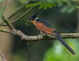翠金鹃体长约17厘米,雄鸟上体辉绿色,头至背缀有很多棕栗色,…