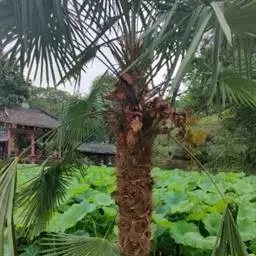 细叶棕竹,灌木,茎细如竹,多数聚生,有网状叶鞘。叶半圆形,掌状深裂,裂片狭长,阔线形,软垂,裂片7…