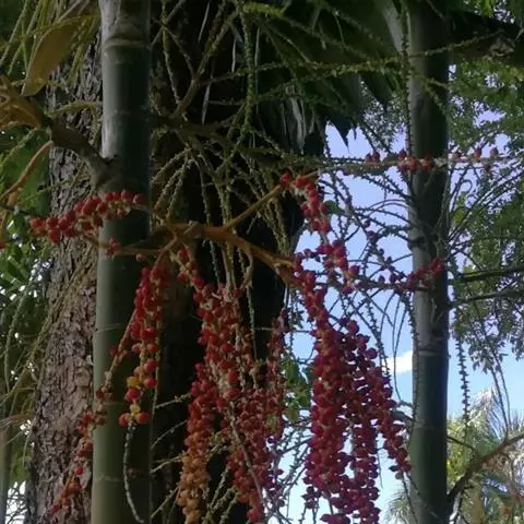 酒椰,茎直立,中等乔木状,高达5-10米。叶为羽状全裂,全长12-13米;羽片线形,长1.2-2米…