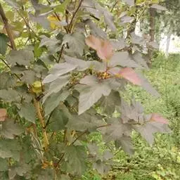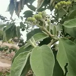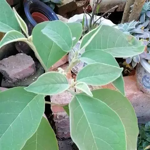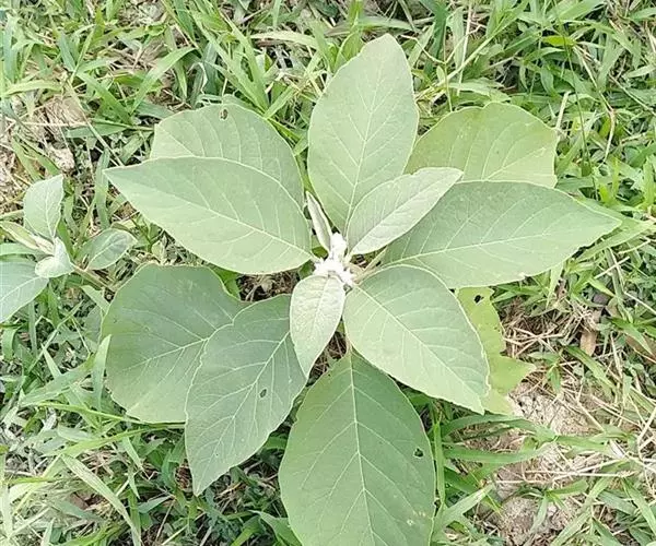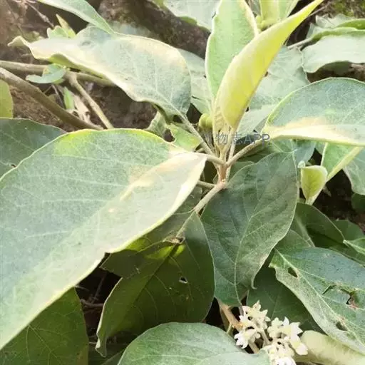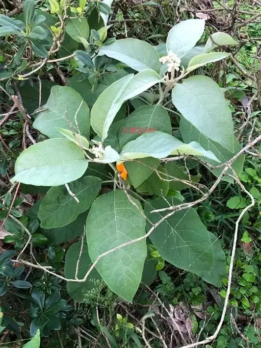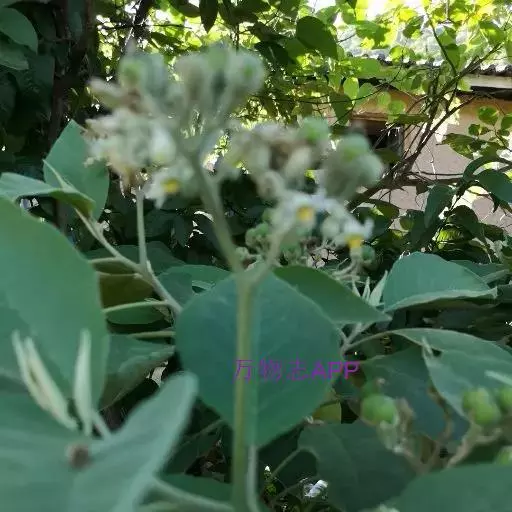 落叶灌木,高l~5m。树皮灰白色。全株均被星状柔毛,有特殊臭气。叶互生,有时对生,有柄;叶片质厚,宽卵形、矩圆状卵形或椭圆状卵形,长10~23cm,宽6~15cm,先端渐尖,基部宽楔形或近圆形,下面密被星状毛。聚伞花序项生或近顶生,总花梗上面有2分枝,每枝有一密集聚伞花序;花萼灰绿色,长约5mm;花冠浅钟状,白色,直径约1.3cm,外面被毛。浆果球形,淡黄绿色,基部有宿萼;种子多数,细小,扁圆形,白色。花期夏、秋季,果期冬季。