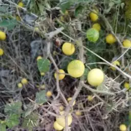 浆果球状,具宿存萼,直径约1.2厘米,黄褐色,初被星状簇绒毛,后渐脱落。种子扁平,直径约1-2毫米。几全年开花结果。