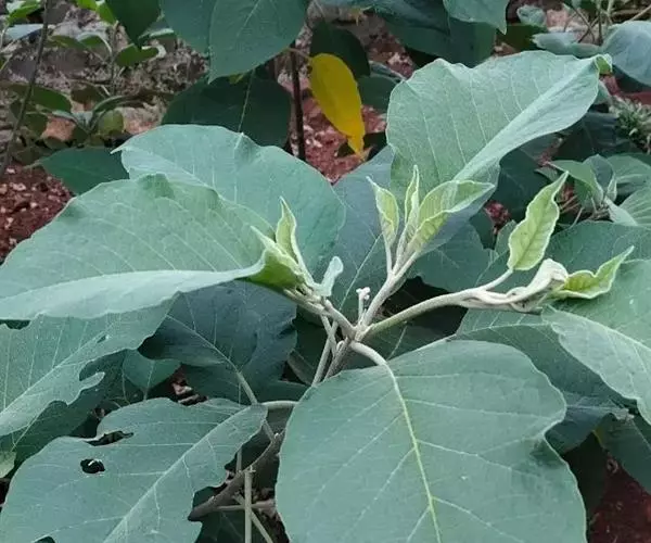 3.治“拢梅兰中”假烟叶树鲜叶适量,捣烂包敷患部。(勐海县傣医岩拉验方)