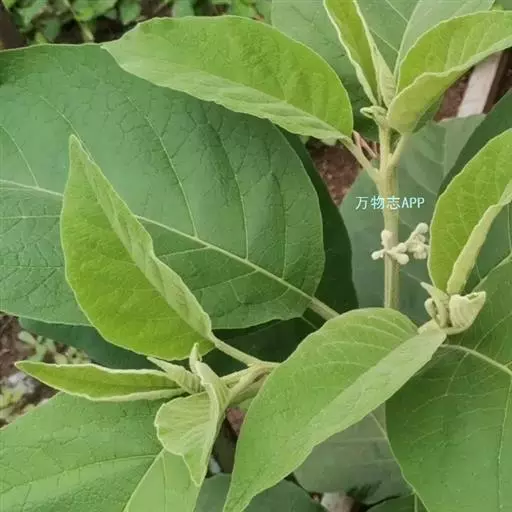 小乔木,高1.5-10米,小枝密被白色具柄头状簇绒毛。叶大而厚,卵状长圆形,长10-29厘米,宽4-12厘米,先端短渐尖,基部阔楔形或钝,上面绿色,被具短柄的3-6不等长分枝的簇绒毛,下面灰绿色,毛被较上面厚,被具柄的10-20不等长分枝的簇绒毛,全缘或略作波状,侧脉每边7-9条,叶柄粗壮,长约1.5 -5.5厘米,密被与叶下面相似的毛被。