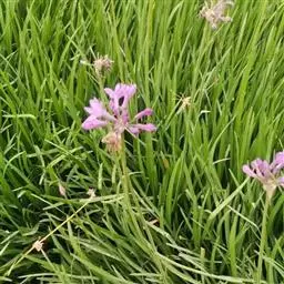 紫娇花是石蒜科紫娇花属的多年生草本植物。植株呈小鳞茎球形;基生叶长条形而先端渐尖;花茎直立,…