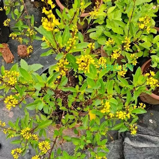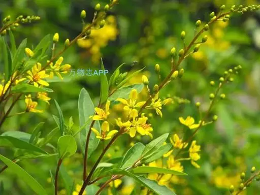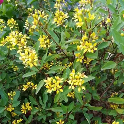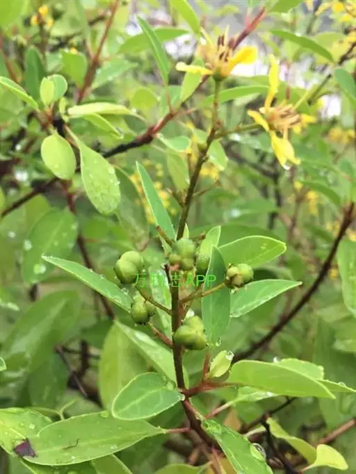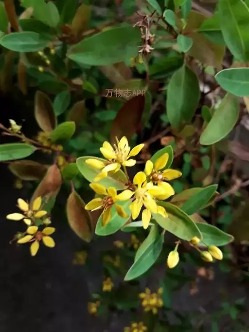 金英常绿灌木,株高约50-160厘米,嫩茎红色。叶片绿色,对生,椭圆形,先端尖,基部楔形,全缘。…
