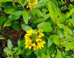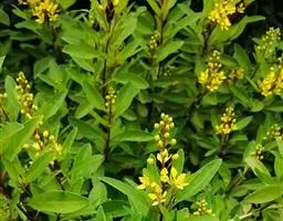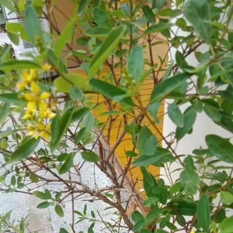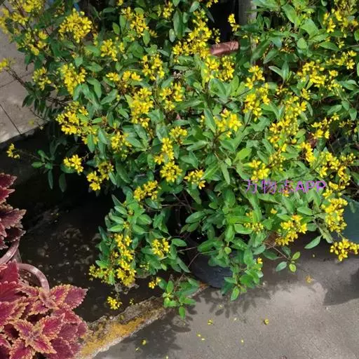 常绿灌木,株高约50-160厘米,嫩茎红色。叶片绿色,对生,椭圆形,先端尖,基部楔形,全缘。花顶生,总状花序,花冠黄色。