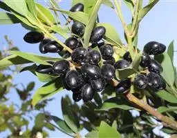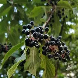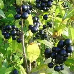果实球形或宽椭圆形,长8-10mm,宽几与长相似,熟时黑色,无毛。花期5月,果期7-8月。