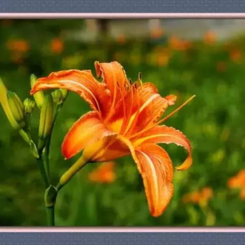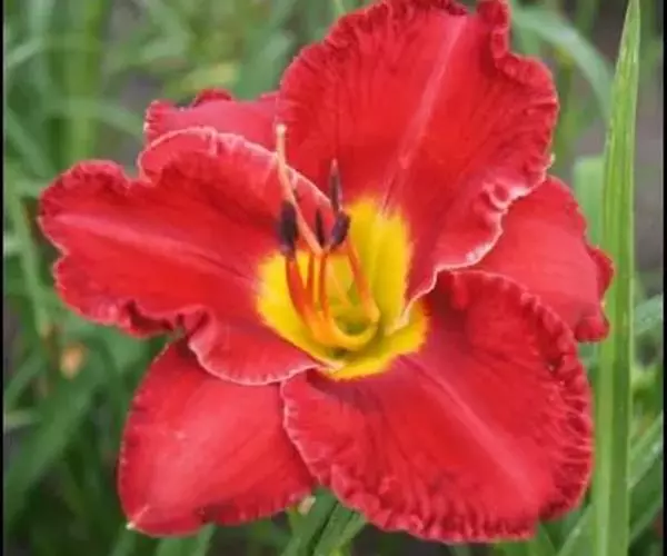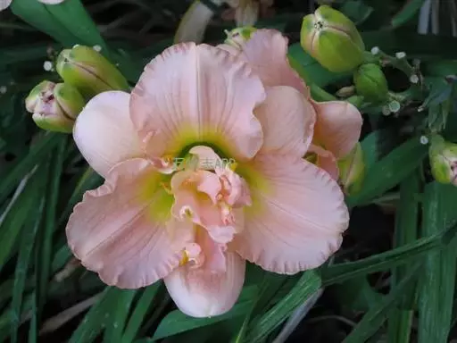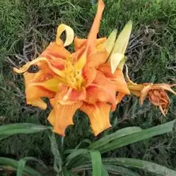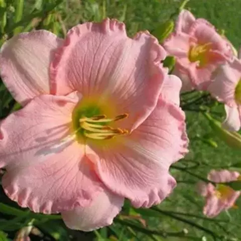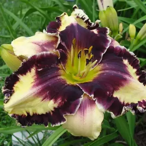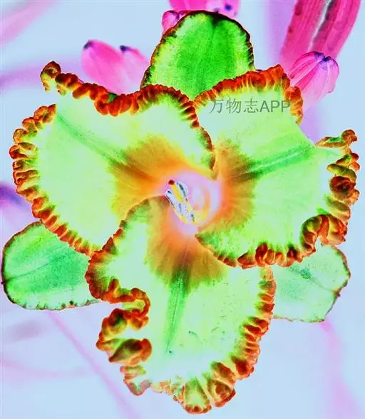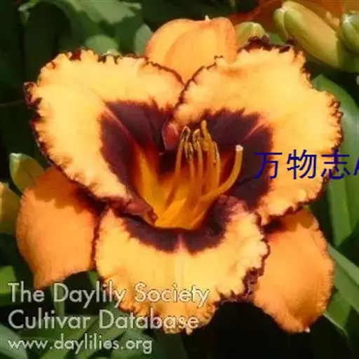 大花萱草(学名:Hemerocallis hybrida Bergmans)是百合科,萱草属多年生宿根草本植物,根状茎粗壮,肉质根。叶基生、宽线形、对排成列,背面有龙骨突起,嫩绿色。花薹由叶丛中抽出,聚伞花序或圆锥花序,有花枝,花色模式有单色、复色和混合色。花大,漏斗形、钟形、星形等,外花被裂片倒披针形或长圆形,内花被裂片倒披针形或卵形,花药黄色、红色、橙色或紫色等多种颜色。子房上位,纺锤形,果实呈嫩绿色,蒴果,背裂,5-10月开花,