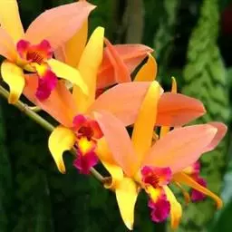 花薹由叶丛中抽出,顶端生聚伞花序或假二歧状圆锥花序,有花枝4-8个,花薹高20-100厘米,每薹着花6-16朵。有红色、黄色、橙色、紫色、绿色、粉色、白色等多种颜色,花色模式有单色、复色和混合色。花大,有漏斗形、钟形、星形等多种花型,花筒长4-10厘米,花冠直径6-14厘米,花瓣6枚,分为内外2层,每层3枚花被片,围绕花柱和花丝呈镊合状排列,外花被裂片倒披针形或长圆形,顶端反卷,边缘无皱缩,长6-10厘米,宽2-6厘米,内花被裂片倒披针形或卵形,顶端反卷,边缘皱缩,长6-10厘米,宽3-9厘米,内外花被片基部合成花被筒。花柱长7-14厘米,柱头表面呈乳突状,成熟时分泌黏液。6枚雄蕊长短不一,花丝长4-10厘米,花药长0.5-1厘米,有黄色、红色、橙色或紫色等多种颜色。子房上位,纺锤形,长0.5-0.9厘米,宽0.3-0.6厘米,绿色。果实呈嫩绿色,果长1.5-3厘米,宽1.5-2.0厘米,蒴果,背裂,内有黑亮种子数粒,自然状态下一些品种可以结实,但大部分品种自然状态下不结实。花期5-10月,