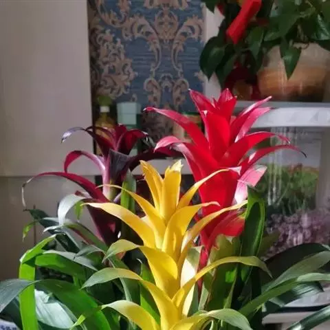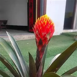 菠萝花从发芽,到成长,再到灿烂的盛开。心无旁骛,行者无疆,即使方寸之土,也要深入精髓。这种追求完美的信念一直伴随着菠萝花。众多的小花密聚在花茎上,形成粗粗的花穗,花穗先端的苞片成放射状伸展。每一朵小花都呈星形。花有黄色的、淡绿色的、粉色的和白色的等。菠萝是一种十分美丽既可观花又能赏叶的室内盆栽花卉。它以基特有的莲座状株型,鲜艳的穗状花序,较长的花期逐渐成为年宵花市场上的“宠儿”。