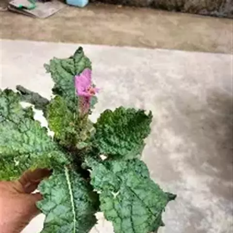 全长30-60cm,茎直立,上部多分枝,具腺毛,有粘性。叶对生,多皱缩而破碎;完整叶片三角卵形,长3-5cm,宽2-3.5cm,羽状深裂,两侧裂片长圆形,顶端裂片较大,卵圆形,边缘具细锯齿,叶两面均有腺毛。穗状花序顶生,花萼钟状,长约6mm,5裂;花冠淡红紫色。味微辛。