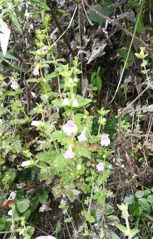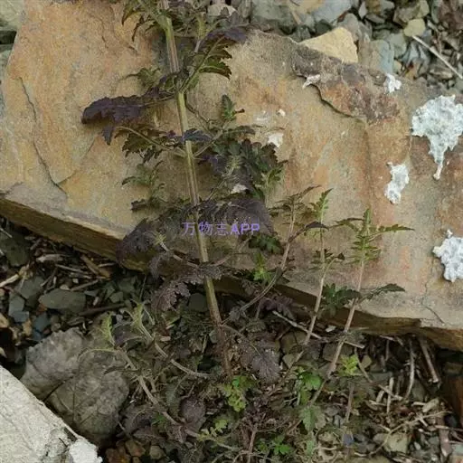 一年生草本,高可达100cm。全株被腺毛,有粘性。茎直立,或弯曲而后上升,多分枝。叶对生;具有带狭翅的柄,柄长5-12mm;叶片长三角状卵形,长1-7cm。下端羽状全裂,向上渐变深裂至浅裂,裂片长卵形,边缘具细齿。花单生于叶腋,花稀疏;花梗长2-7mm;萼钟状,5裂,果期增大,裂片长卵形,上端羽状齿裂,边缘有细齿;花冠紫红色或淡紫红色,筒状,长1.5-2cm,2唇形,下唇有两条横的大皱褶,上有白色长柔毛;雄蕊4,药室基部延长成短芒。蒴果卵状圆锥形,长约1cm,室背2裂。种子卵圆形,扁平,长约1.2mm。花期7-8月,果期8-10月。