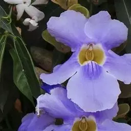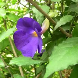 山牵牛(学名:Thunbergia grandiflora (Rottl. ex Willd.) Roxb.)是爵床科、山牵牛属攀缘灌木,分枝较多,可攀援很高,匍枝漫爬。叶片卵形、宽卵形至心形。花在叶腋单生或成顶生总状花序,苞片小,卵形。蒴果被短柔毛。