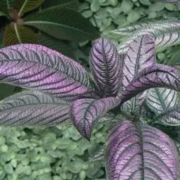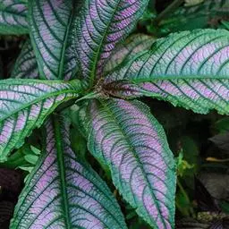 红背耳叶马蓝也称为红背马蓝。叶多卵形,花丝光滑无毛。