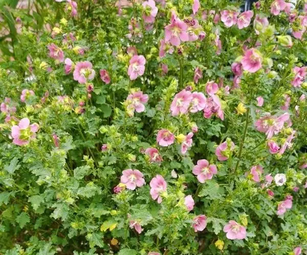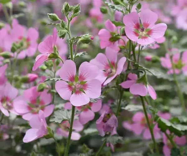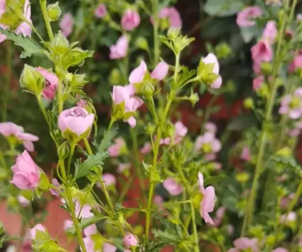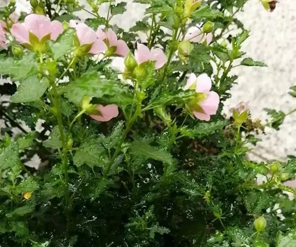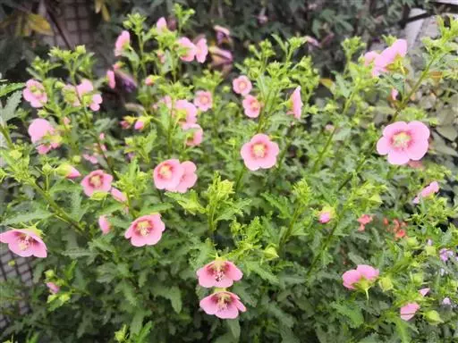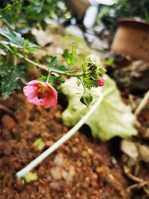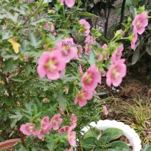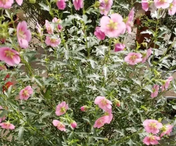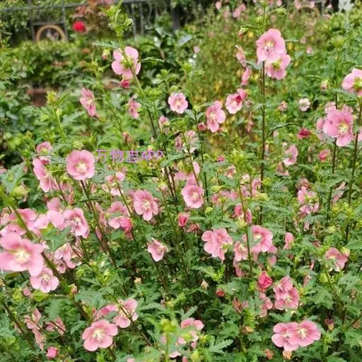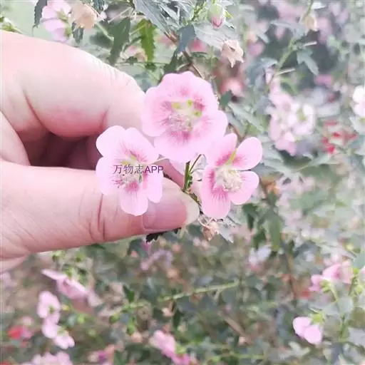 小木槿为锦葵科多年生半灌木。又名:南非葵、小木槿、玲珑木槿、迷你木槿、假木槿、迷你芙蓉及大茴香草,台湾多用:玉玲珑、玲珑扶桑。茎具分枝,绿色、淡紫色或褐色。花期夏至秋。型态像缩小版的木槿。于叶腋处开1~3朵花。花小,5瓣,圆整可爱,为粉色或粉红色。开花不断,花苞非常多,花瓣轻盈,花形清秀。产地山东、安徽、江苏长景园林、浙江等地。