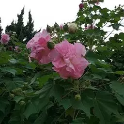 海滨木槿是锦葵科木槿属植物,落叶小乔木,株高3-5米,胸径20厘米,扁球形树冠,枝叶繁盛。…