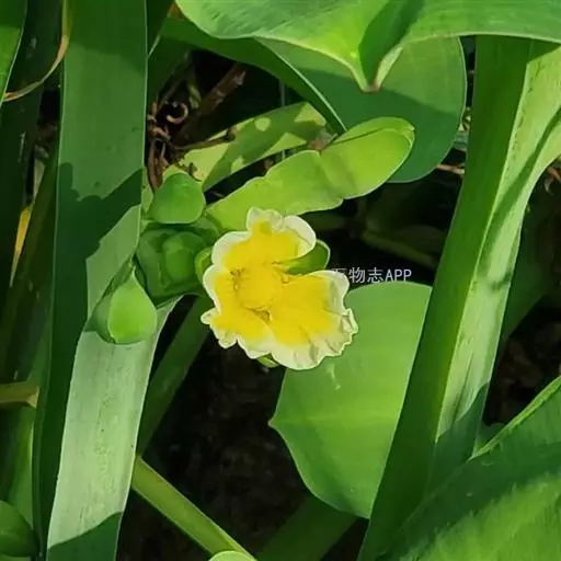 水生草本。叶丛生,挺出水面;叶片卵形至近圆形,长6-28厘米,宽4.5-20厘米,亮绿色,先 黄花蔺 端圆形或微凹,基部钝圆或浅心形,背面近顶部具1个排水器;叶脉9-13条,横脉极多数,平行,几与中肋垂直,网脉细密,不明显;叶柄粗壮,三棱形,长20-65厘米。