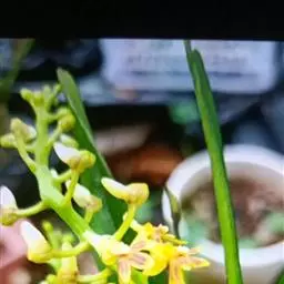 大序隔距兰 Garay):茎直立,扁圆柱形,伸长,达20余厘米,通常粗5-8毫米,被叶鞘所包,…