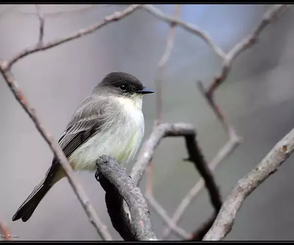 小纹霸鹟,分布于北美地区,列入《世界自然保护联盟》ver 3.1:2009年鸟类红色名录。