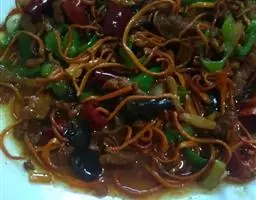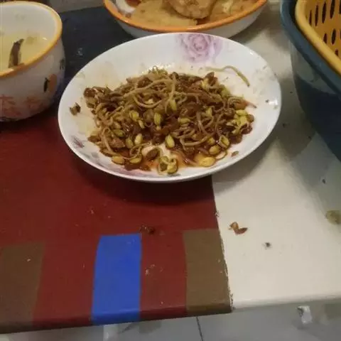 放一勺左右豆瓣酱,炒到里面的油都成了红色,满锅都是红色的泡。再把瘦肉放进去炒一会,再放鲜姜末、葱末、蒜末。要注意的是葱加蒜的量等于姜。按顺序放(姜、葱、蒜)。每放一种就炒十几秒钟。炒后再放料酒、老抽、生抽,还有少量醋。醋要少,味精十克左右,再炒一会儿。