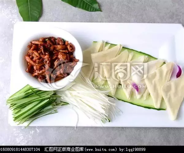 猪里脊肉、大葱、黄瓜、豆皮儿、甜面酱、白糖、香油、酱油、料酒、蛋清、淀粉、葱、姜等。