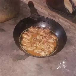 有一次,陈老汉把猪肉挑出瘦的,切成很薄的片,下锅炒并放豆酱炒好,没有面饼还有点豆腐皮,切成方块,照猫画虎就做好了“烤鸭”,孙子用豆腐皮卷着大葱和“烤鸭”吃的那香就别提有多么高兴了,爷俩度过了一个幸福的春节。