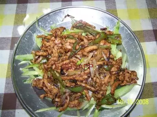 6.盛起猪肉丝,放在有葱丝的盘中,拌匀即可食用。
