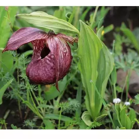 云南杓兰:植株高20-37厘米,具粗短的根状茎。茎直立,无毛或在上部近节处疏被短柔毛,基部具数枚鞘…