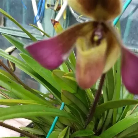 风兰 H.H.Hu):植株高8-10厘米。茎长1-4厘米,稍扁,被叶鞘所包。叶厚革质,狭长圆状镰刀形。…
