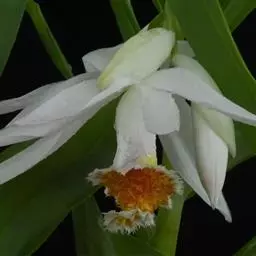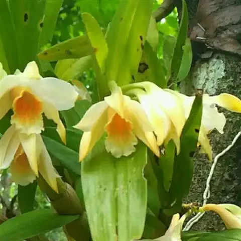 三棱虾脊兰:根状茎不明显。假鳞茎圆球状,粗约2厘米,具3枚鞘和3-4枚叶。假茎粗壮,鞘大型,先端钝,…