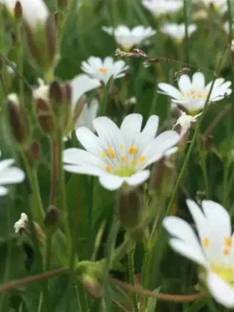 卷耳是石竹科卷耳属多年生草本植物。叶线状披针形,基部模形,疏被柔毛;聚伞花序具3-7花,苞片披针形,…