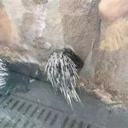 豪猪能很熟练地用前爪处理食物,使劲把食物“钉”在地上,用力把它咬碎吃掉。通常情况下,豪猪单独觅食,尽管有时它们也三三两两地一起吃东西。它们偶尔也吃骨头,会将骨头带到洞里,用以磨牙或吸收里面的磷酸盐。