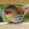 七彩文鸟是梅花雀科、鹦雀属鸟类。头部羽色有黑、红、黄之别。幼鸟体色初期为灰色,下部较淡,…