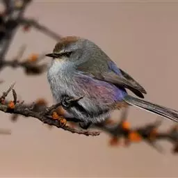 花彩雀莺:体长9-12厘米,是一种毛茸茸偏紫色的雀莺。顶冠棕色,眉纹白。尾长,羽毛松软。…
