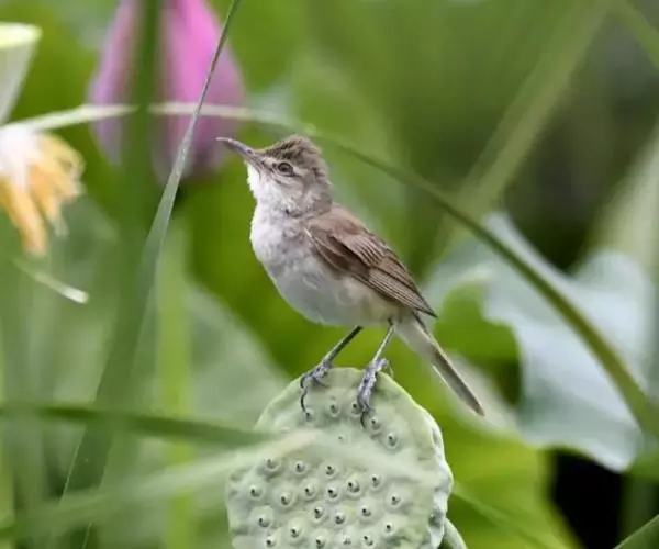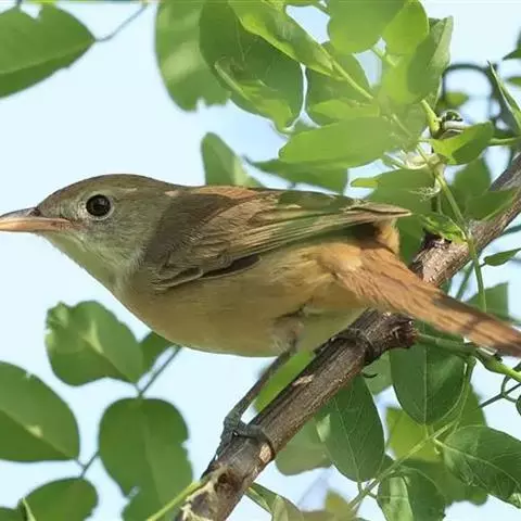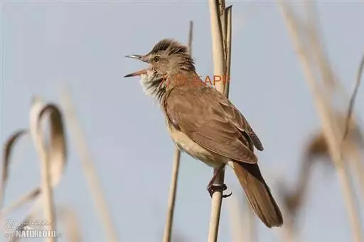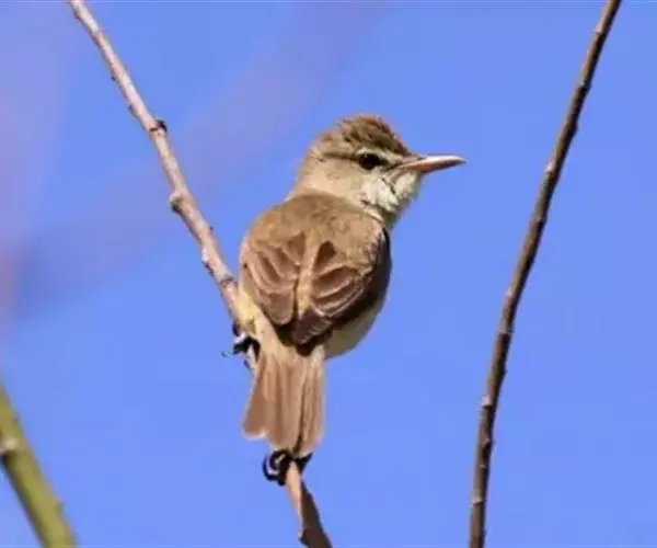大苇莺(学名:Acrocephalus arundinaceus):属小型鸟类,雌雄两性羽色相似。眉纹淡棕黄色;眼褐色;翅褐色具淡棕色的边缘;尾羽亦褐色,但较翅羽的褐色稍浅。顶部是棕色,上体呈黄褐色,腹面淡棕黄色,两胁较深,腹部中央转为乳白色。虹膜褐色;上嘴黑褐色,下嘴苍白,先端黑茶色;脚淡铅蓝色。喙薄,像大多数食虫动物。