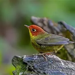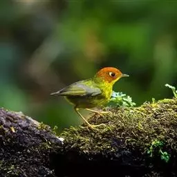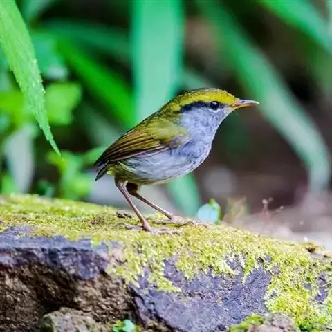 金冠地莺:形态与灰腹地莺相似,上体橄榄绿,前额至头顶渲染亮金黄色;下体几乎纯暗石板灰色,…