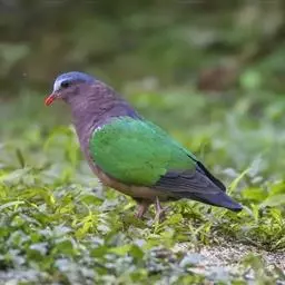绿背金鸠体长约25厘米,是中等体型、尾甚短的地栖型斑鸠。下体粉红,头顶灰色,额白,腰灰,两翼具亮绿色。…