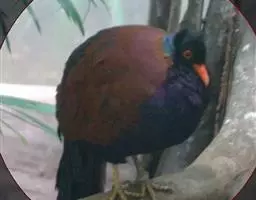 斑尾鹃鸠体长38厘米,是体大而尾长的褐色鹃鸠。背及尾满布黑色或褐色横斑。头灰,颈背呈亮蓝绿色。胸偏粉,…
