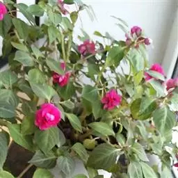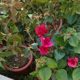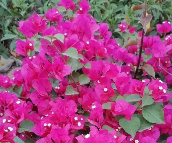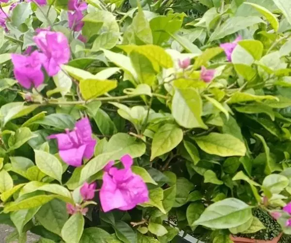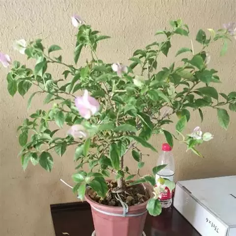 叶子花 移栽以及移栽后的管理:移栽时要注意的一点是,即打算移栽前的2天至3天不要浇水,以便使营养钵内的泥土硬结成团,避免移栽时土壤散开,导致长出的新根与泥土分离,影响移栽后的成活和生长。移栽时,先用枝剪或小锯片在营养钵外紧挨营养钵壁的地方将枝条剪断或锯断。然后,小心地将营养钵去掉,再将植株移栽在准备好的花盆内。盆土以园土拌腐叶土或岩山土为好,盆土内最好还拌上一些经过发酵的菜枯或豆饼枯之类的基肥。移栽后再在植株旁边插上木棍将植株捆扎固定。然后浇水,水要浇透。如果阳光太强,可将花盆放在阳台内遮阳1天至2天,然后再放到阳台上晒太阳,按正常的管理方法管理。