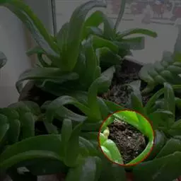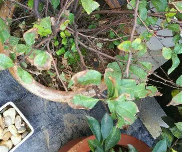 选好枝条后,再在估计处于营养钵中心位置的枝条部位,用小刀对枝条进行环切,去掉一圈树皮,深度要达到木质部,露出木质部,长度约为0.7厘米至1厘米左右。然后根据所选枝条的粗细,取一直径约为10厘米至15厘米的黑色软质营养钵,先将营养钵的任意一边从上至下剪开,剪开的长度根据枝条嵌入钵内的高度而定。然后在营养钵的下部周边和底部共剪5个至7个小孔,作为漏水和观察用。然后将营养钵套在枝条上,使枝条的环切处位于营养钵上部1/3处,并处在营养钵的中心位置。再用木棒扎成三角架将营养钵固定,或用其他方法(如在营养钵的下方再放一个装满泥土的营养钵)固定。在原来营养钵的剪开处用细铁丝扎好。再填入干湿适度的泥土,泥土一般以园土拌腐叶土为好。填入泥土时要注意将枝条的下方填实,不留空隙,并将泥土稍为压紧。最后浇水,水要浇透。