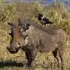 非洲疣猪是很多非洲食肉动物的捕食对象,包括斑点猎狗、野狗、印度豹、狮子、豹和老鹰等等。当危险来临时,如果可能它们会尽可能退到它们的洞穴里。在战斗中,非洲疣猪能用长长的下犬齿进行防守,让它们占到多一些优势。除了掠食者外,疣猪对非洲大草原上的其它动物毫不在意,它们会和平的做自己的事。黄犀鸟就是和飞洲疣猪有共同生活关系的鸟类,它们被允许可以吃掉在疣猪身上的寄生虫。