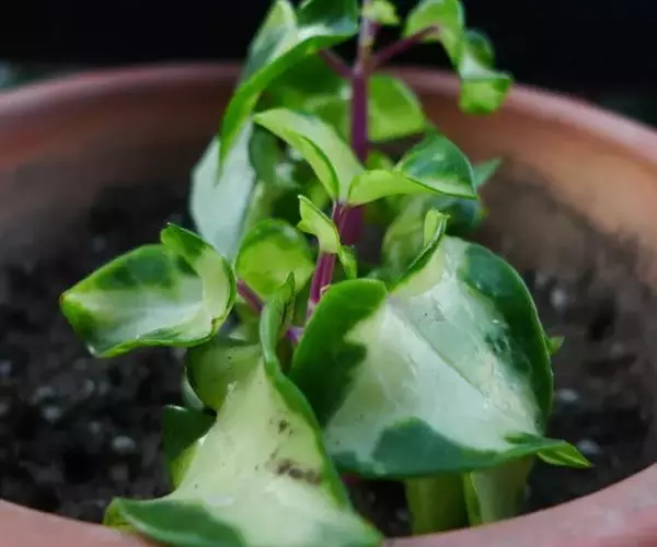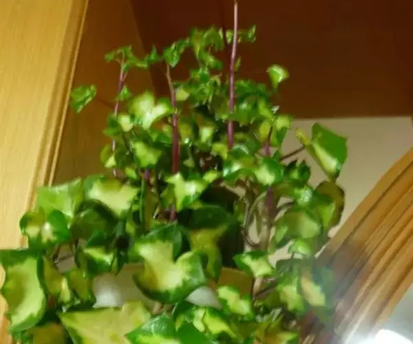为多年生常绿草本植物。植株匍匐或攀援向上生长,茎圆,红褐色,肉质,长约2米