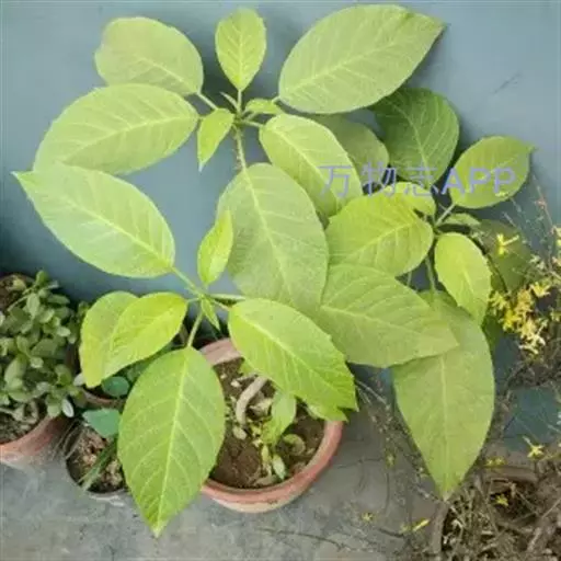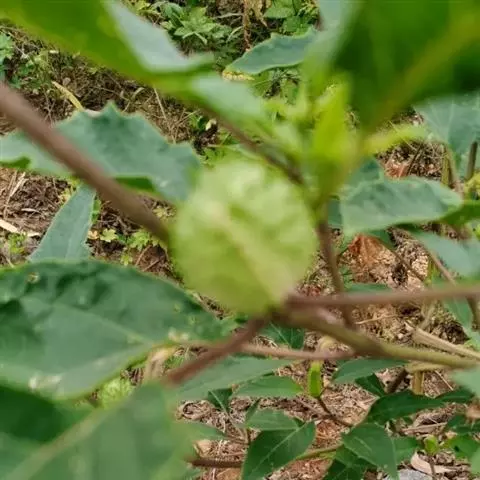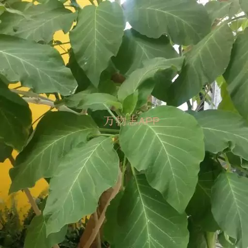 小乔木,高2米余。茎粗壮,上部分枝。叶卵状披针形、矩圆形或卵形,顶端渐尖或急尖,基部不对称楔形或宽楔形,全缘、微波状或有不规则缺刻状齿,两面有微柔毛,侧脉每边7-9条,长9-22厘米,宽3-9厘米;叶柄长1-3厘米。