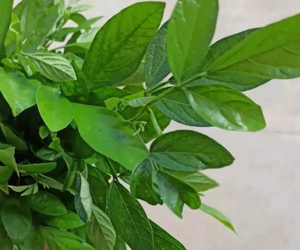 直立灌木或亚灌木,高1-2米。树皮灰褐色,分枝多,上部分枝略被柔毛。叶为羽状三出复叶,小叶3;托叶披针状线形,长5-10毫米,基部宽约1毫米,具条纹,宿存,叶柄长1.5-4厘米,扁平,较厚,上面具深沟,多少被柔毛,两侧具极窄的翅;小叶近革质或纸质,顶生小叶披针形或长圆形,长5-9厘米,宽1.5-2.5厘米,侧生小叶较小,先端渐尖,急尖或短渐尖,基部楔形,全缘,上面绿色,有光泽,疏被极短柔毛、老时渐变无毛,下面疏被贴伏短柔毛,中脉上毛较密,侧脉每边10-12条,不达叶缘;小托叶丝状,长2-5毫米;小叶柄长达14毫米。