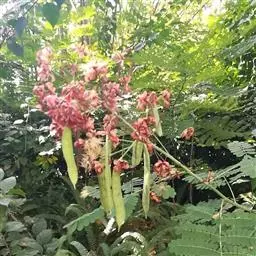 红花刺槐是豆科刺槐属的植物。其干皮深纵裂;枝具托叶刺,羽状复叶互生,叶片卵形或长圆形,…