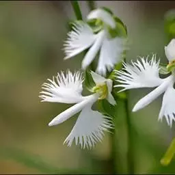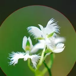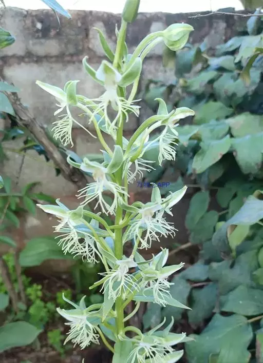 植株高65-75厘米,干后变成黑色。块茎肉质,长圆形,长2-5厘米,直径0.8-1.5厘米。茎粗壮,直立,圆柱形,直径4-6毫米,具5-7枚叶。叶片卵形、卵状长圆形至长圆状披针形,长5-12厘米,宽1.5-4.5厘米,先端渐尖,基部抱茎,向上逐渐变小。总状花序具4-15朵花,长4-21厘米;花苞片披针形,长达4.5厘米,宽约1厘米,先端渐尖,下部的长于子房;子房圆柱形,扭转,无毛,连花梗长2.5-3.5厘米;花大,绿白色或白色;萼片淡绿色或白色,边缘具缘毛,中萼片长圆形,直立,凹陷呈舟状,长1.5-1.8毫米,宽6-7毫米,先端钝,具5脉;侧萼片反折,斜卵状披针形,长1.7-2厘米,宽6-8毫米,先端渐尖,具5-7脉;花瓣白色,直立,斜披针形,近镰状,不裂,外侧边缘不臌出,长1.4-1.7厘米,宽3-4毫米,先端近急尖,具3-5脉,边缘具缘毛,与中萼片靠合呈兜状;唇瓣白色或淡黄色,长2.5-3厘米,基部不裂,在基部以上3深裂,裂片具缘毛;中裂片线形,长20-25毫米,先端急尖,与侧裂片近等长;侧裂片线形,外侧边缘为蓖齿状深裂,细裂片7-10条,丝状;距细圆筒状,下垂,长4.5-6.5厘米,稍弯曲,末端稍膨大而钝,较子房长,甚至超出近1倍;花药直立;药隔顶部截平,宽4毫米,药室叉开,伸长;花粉团狭椭圆形,长4毫米,具线形、长5毫米且向上弯的柄和粘盘,粘盘小,近圆形;柱头的突起物细长,棒状,长5毫米,约与药室等长,前部镰状膨大,且向上弯曲;退化雄蕊小,长椭圆形。花期6-8月。