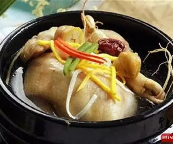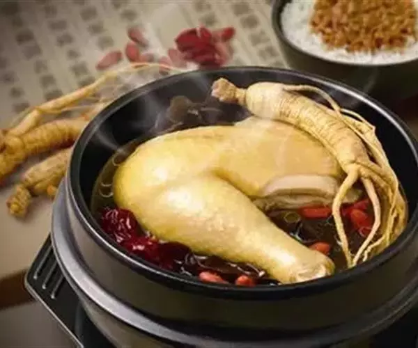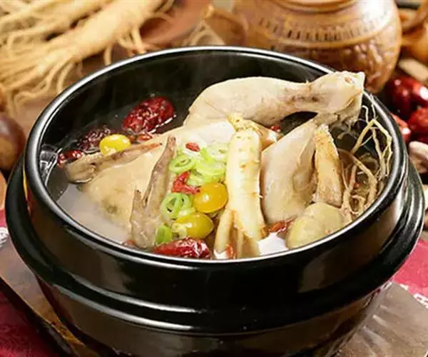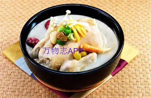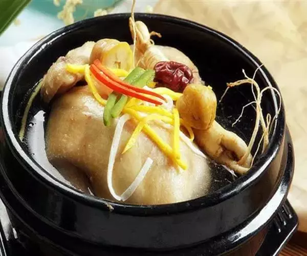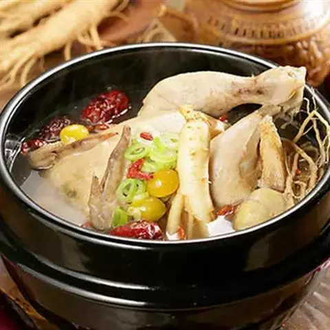 参鸡汤是一道以高丽参、童子鸡和糯米煲成的中国古老的广东粤菜汤类家常菜之一,传至韩国后成为最具代表性的韩国宫中料理之一。具有良好的补血、补气、养颜、安神、补充体力之功效。
