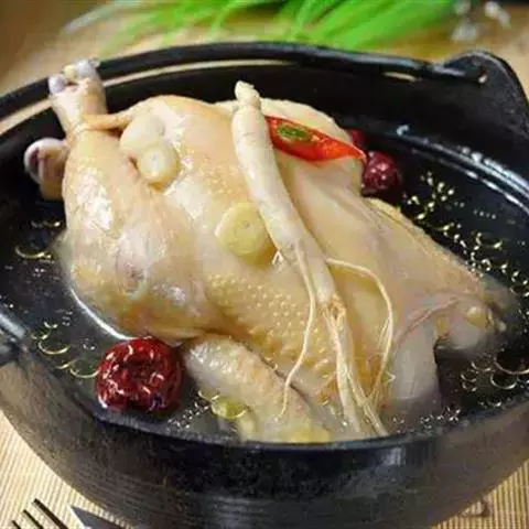 原料:童子鸡、糯米、人参、鹿茸、红枣、大蒜