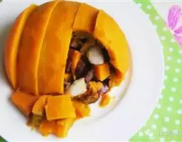 1、童子鸡洗净,把适量糯米、栗子、白果塞入鸡腹中,待用。