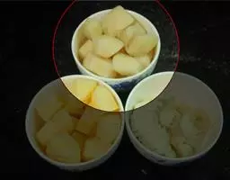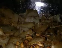 4、取煲好牛杂及适量的牛杂汤,再放入适量萝卜,小火慢熬,熬半小时(作用是使萝卜和味)关火即可出售。出售时用剪刀把牛杂剪成若干小块装入一次性小碗里(在西关的牛杂,是完全切好再煲的,就不用剪的),应顾客要求加入少许牛杂汤,放入辣酱或甜酱,撒香葱即可。